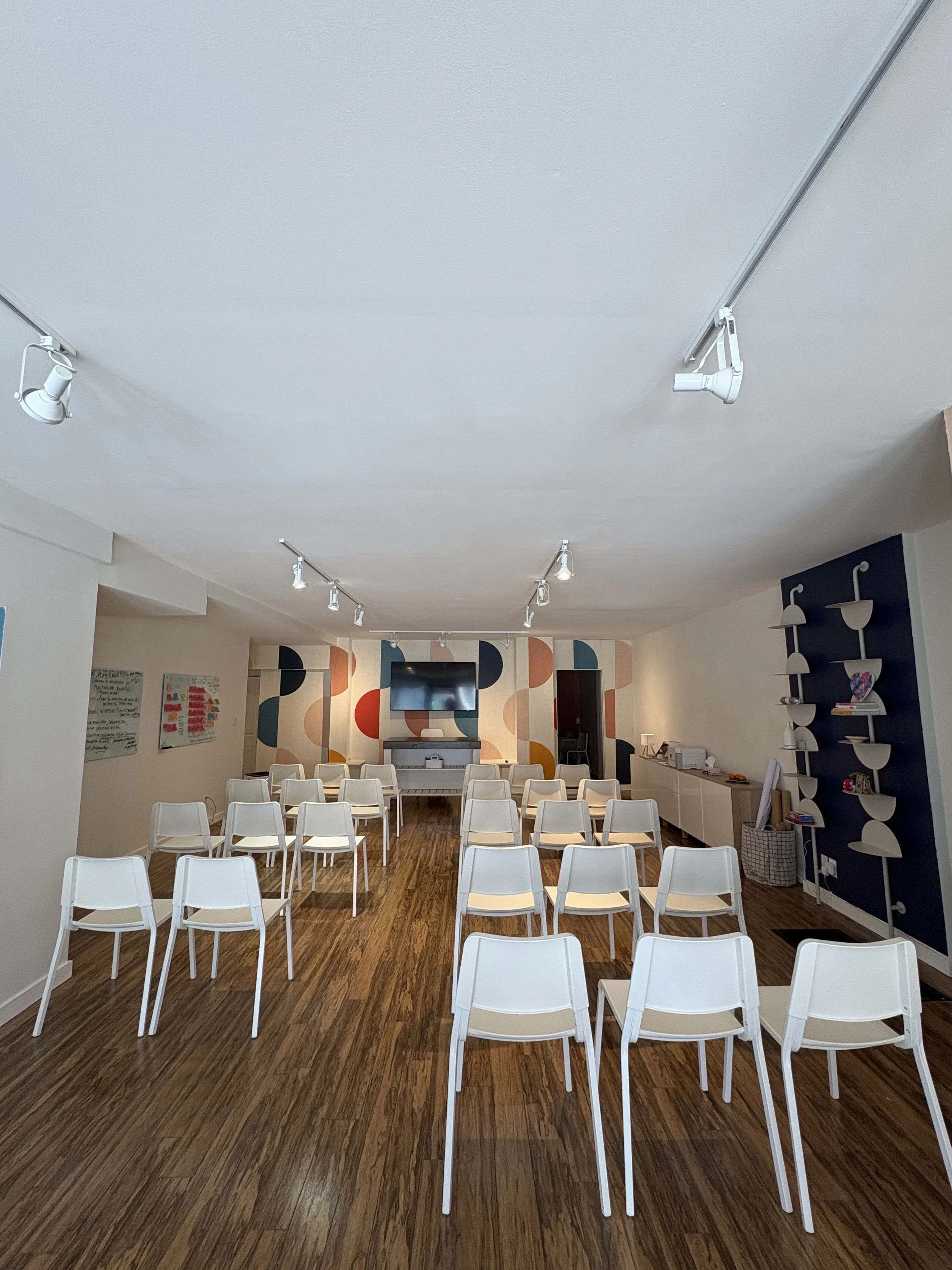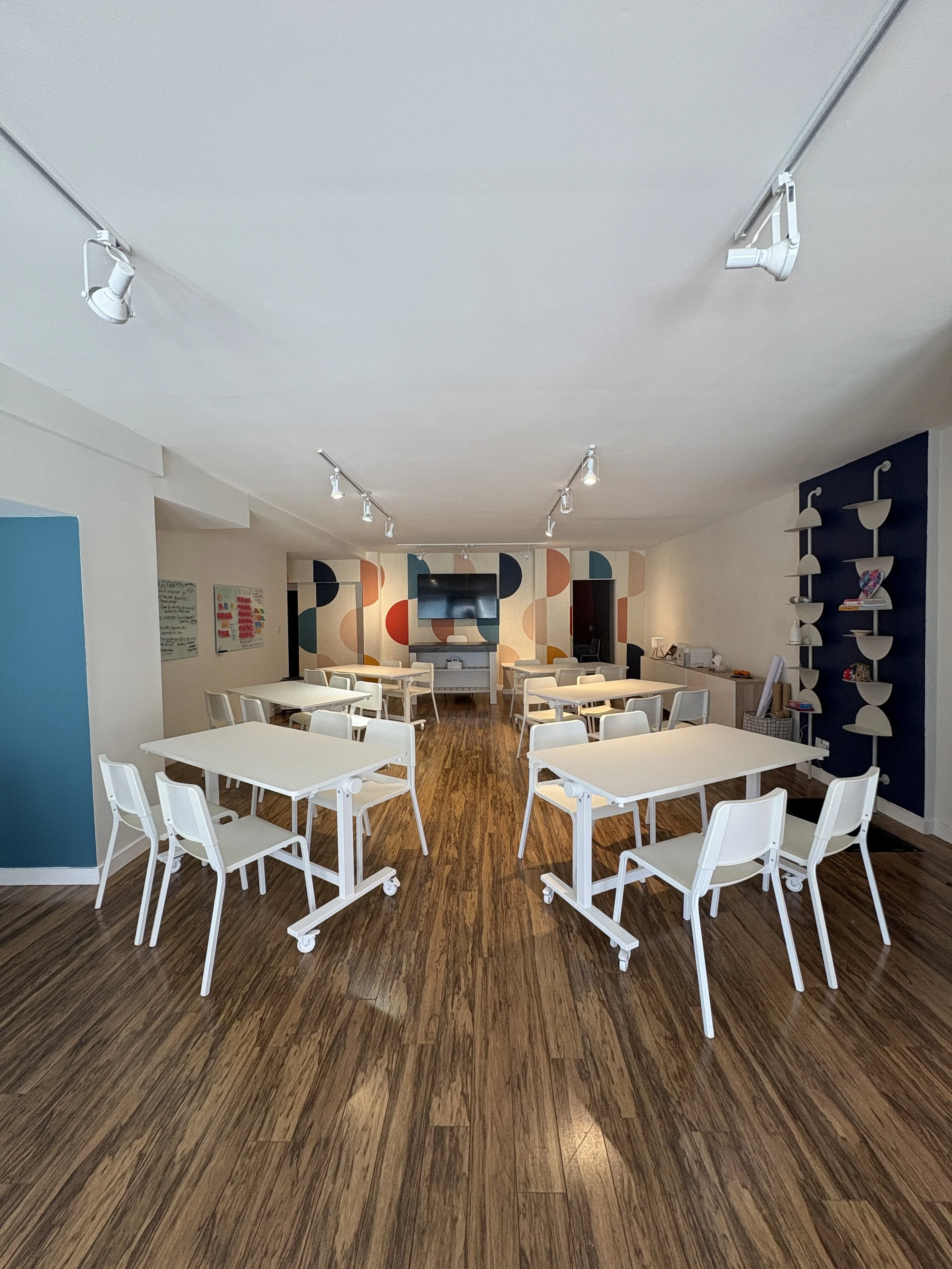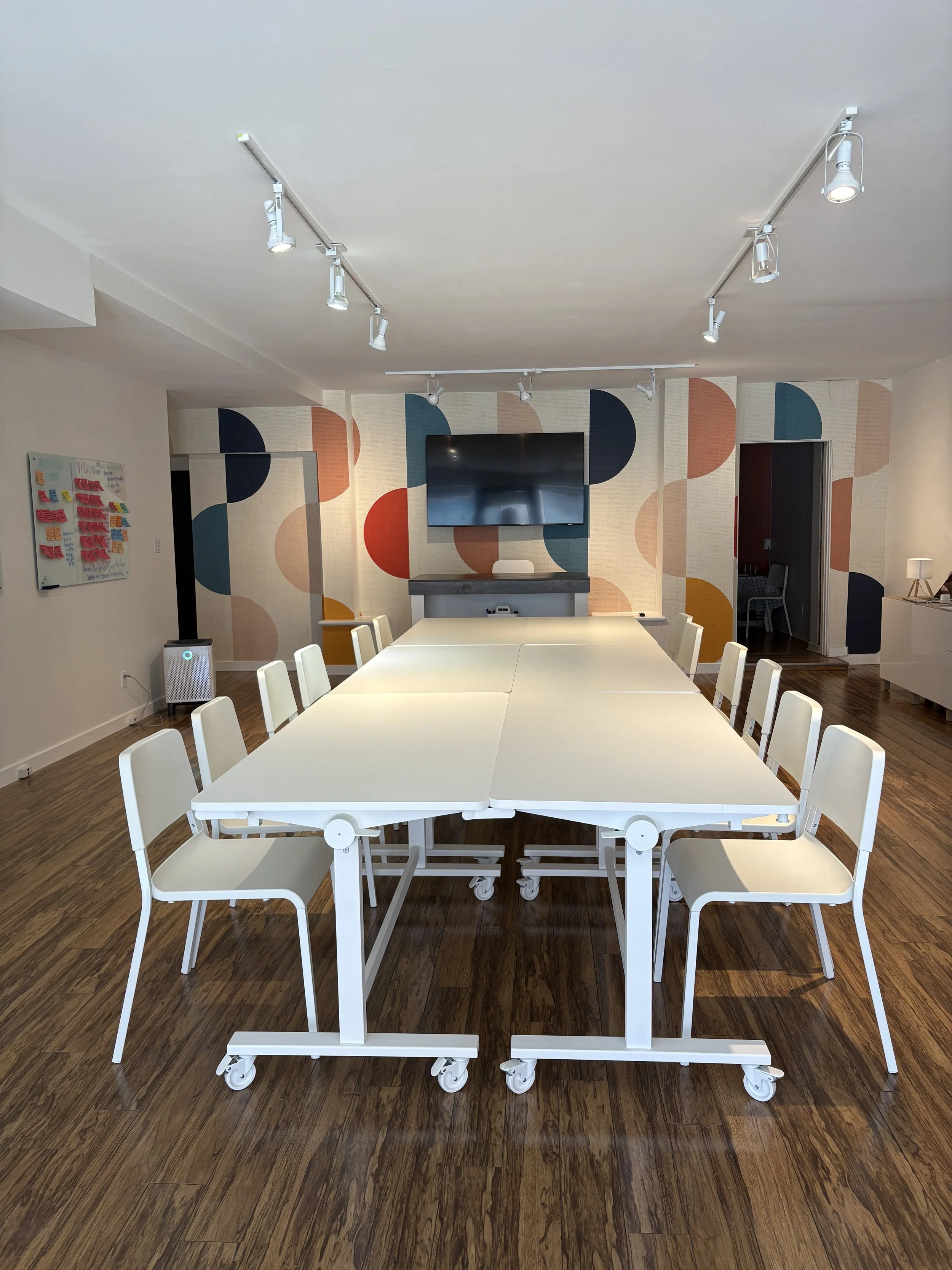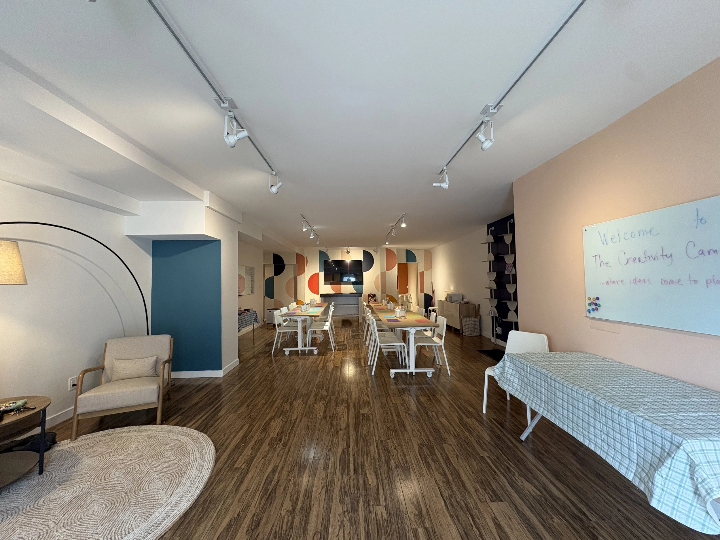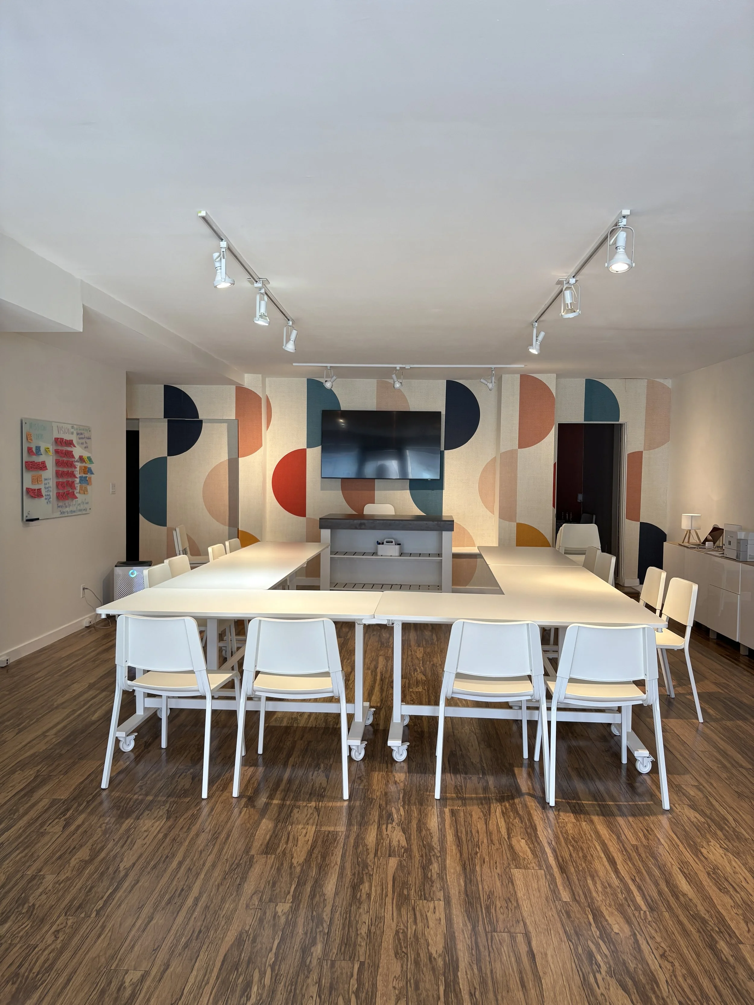 Our space was created with creativity and innovation in mind and it’s ideal for innovation and strategy sessions, arts and design workshops, team offsites, coaching retreats, creative sprints, community experiences, and creative events.
